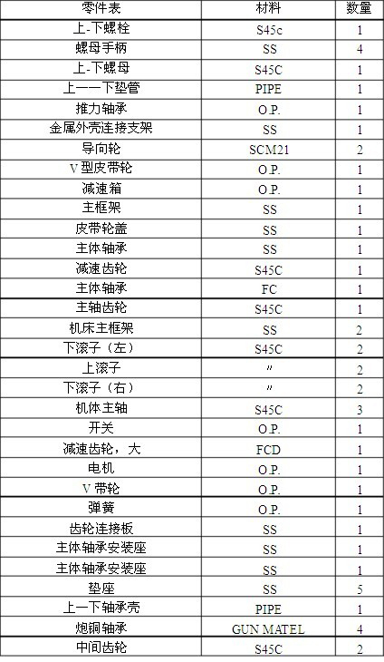 法蘭卷圓機的零件如下圖:
