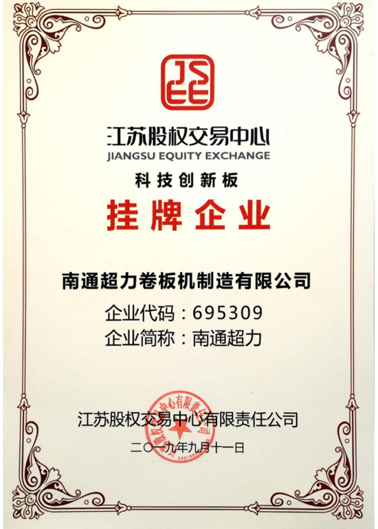 南通超力卷板機制造有限公司,國家高新技術企業,中國卷板機機床專業設計、研發與制造企業。公司承擔國家火炬計劃項目3項,《JB/T12830-2016/數控二輥卷板機》、《JBCPZT0758-2016/數控矯圓機》行業標準起草單位,中國鍛壓協會會員,擁有W10、W11和W12等出口產品質量許可證。
