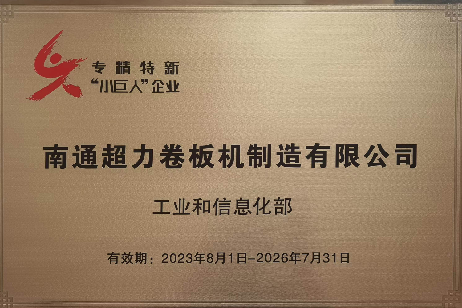 南通超力卷板機公司憑借15年來對卷板機領域的專注耕耘,堅持自主創新,夯實核心競爭力,成功入選2023年國家級專精特新“小巨人”企業名單。